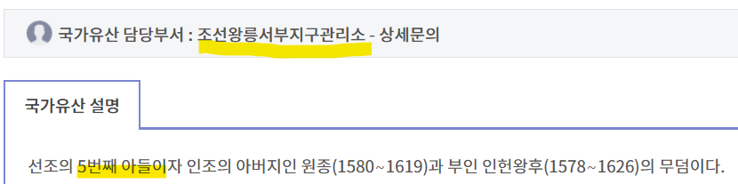 ** 국가유산청 설명에는 선조의 5번째 아들이라.... 정실, 후실, 무수리 따져서 순번이 바뀌나요??