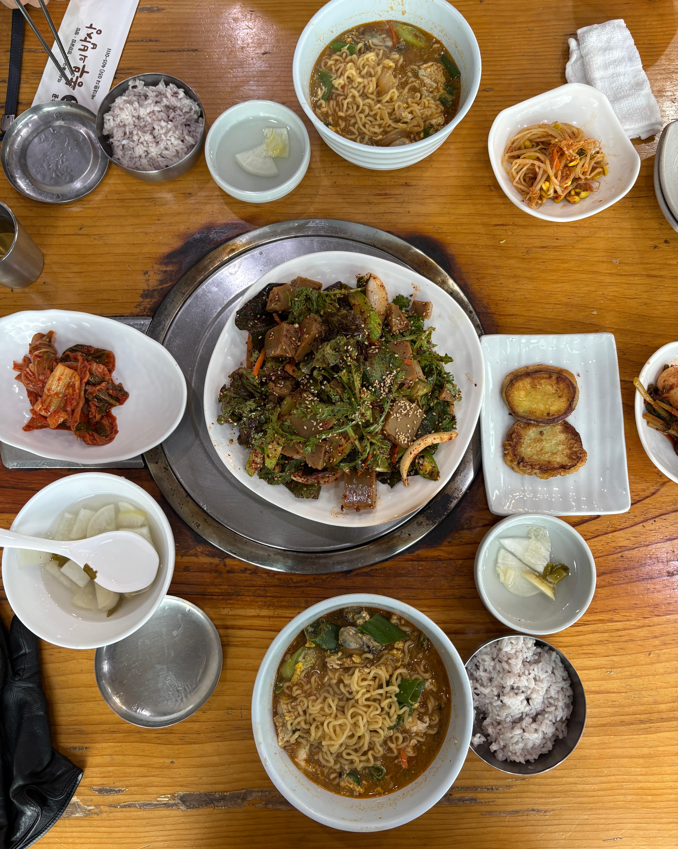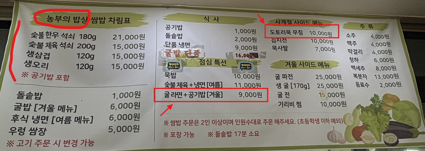 원래는 '농부의밥상 쌈밥'을 먹어야하나 치아 치료중인 분이 있어서 굴라면+공기밥[겨울] 2개와 '도토리묵 무침' 주문했어요. 직생사상 분식중 라면을 먹은 것이 처음인 듯하네요. 그래도'굴라면이니...기대함~~