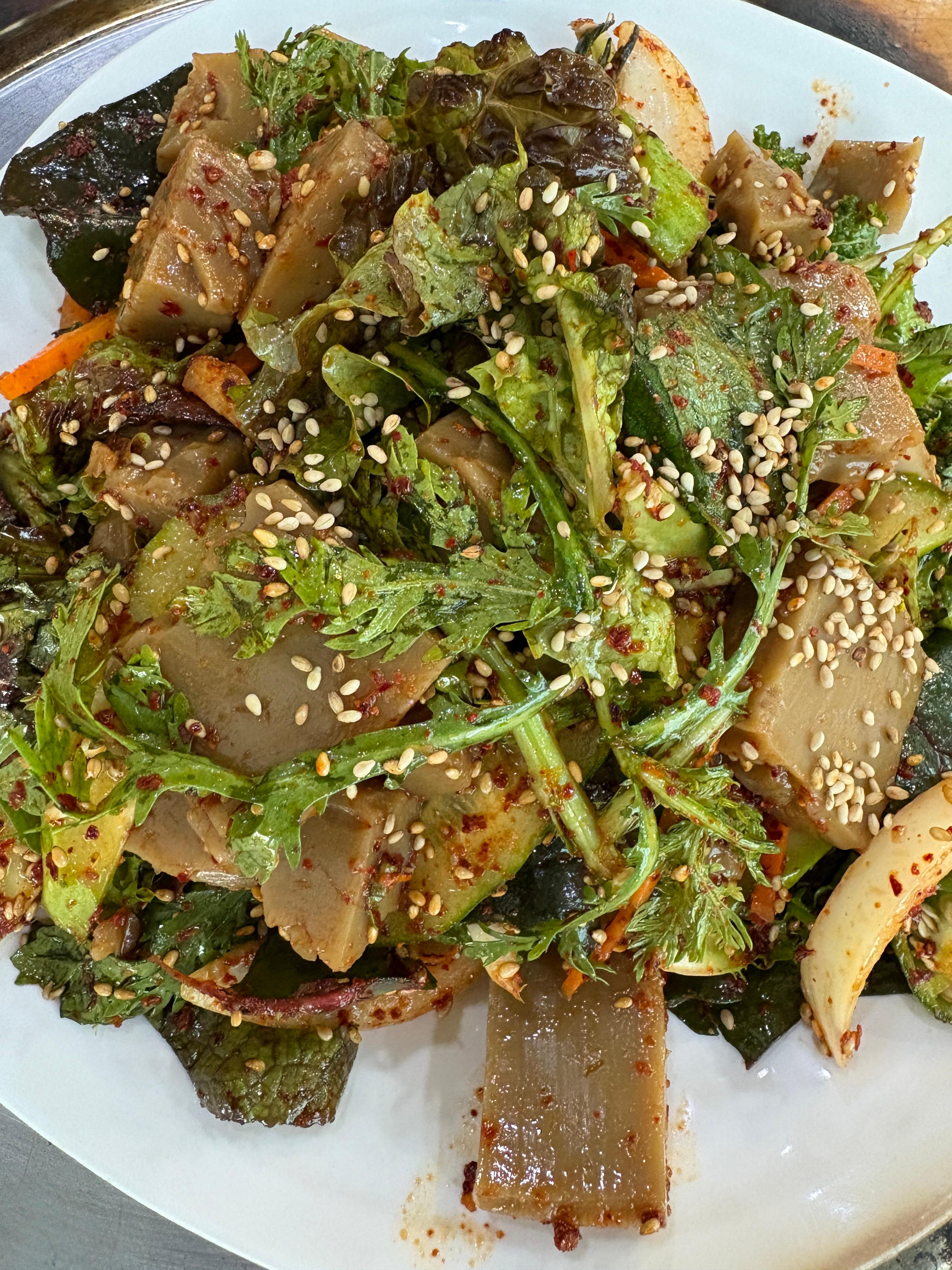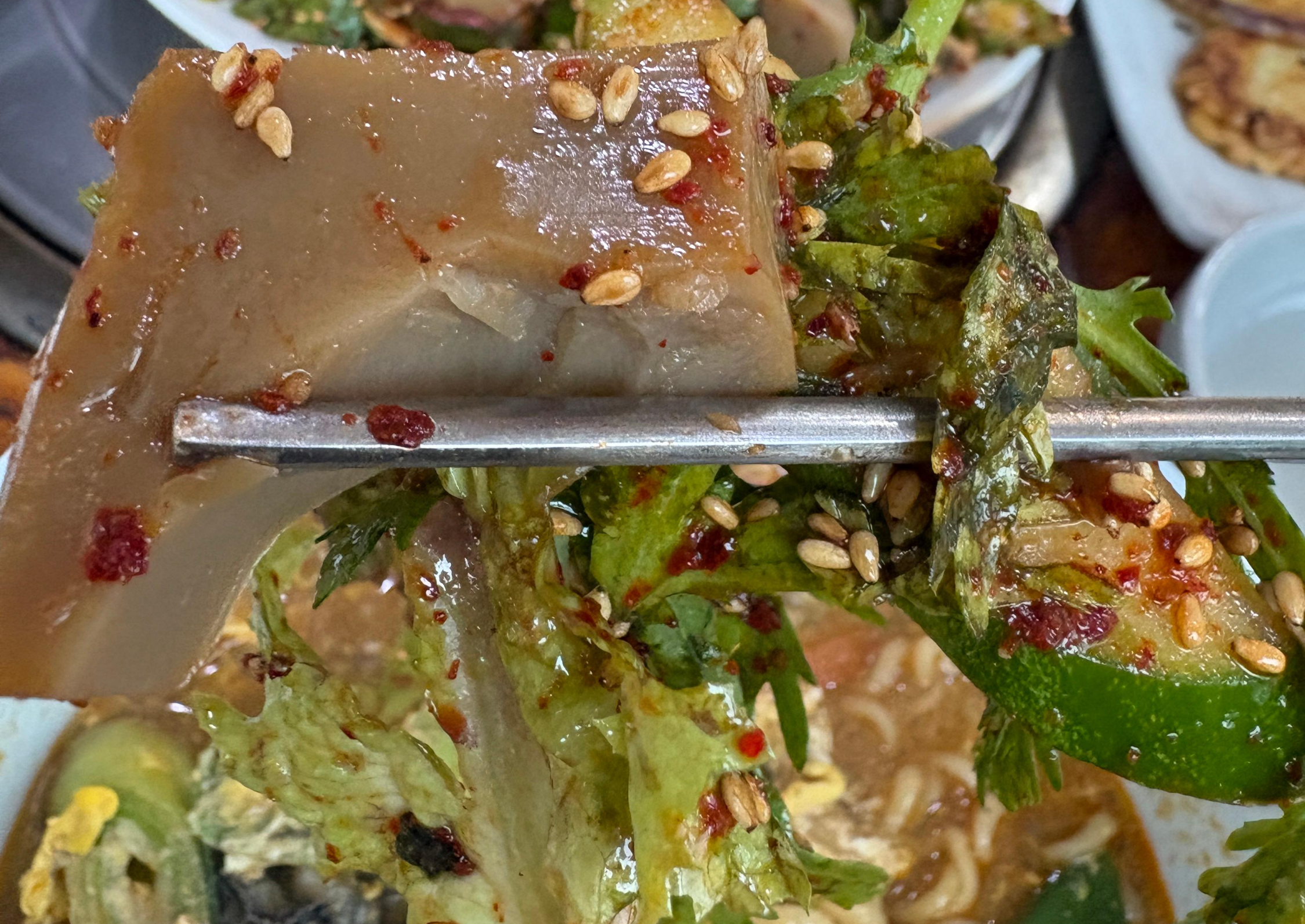 ** 도토리 묵과 야채는 싱싱하고 아삭해요