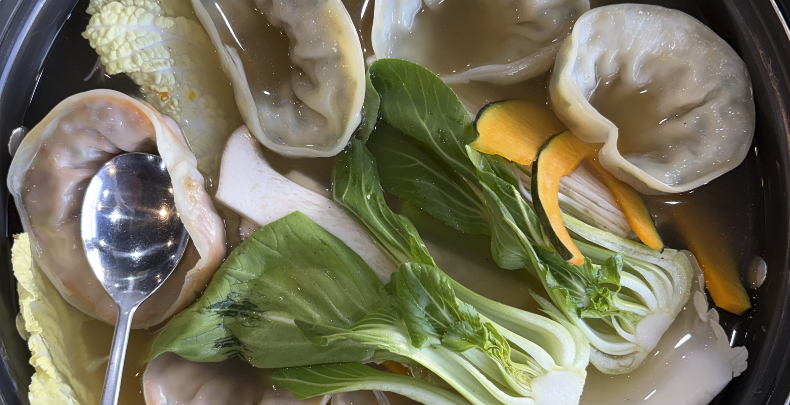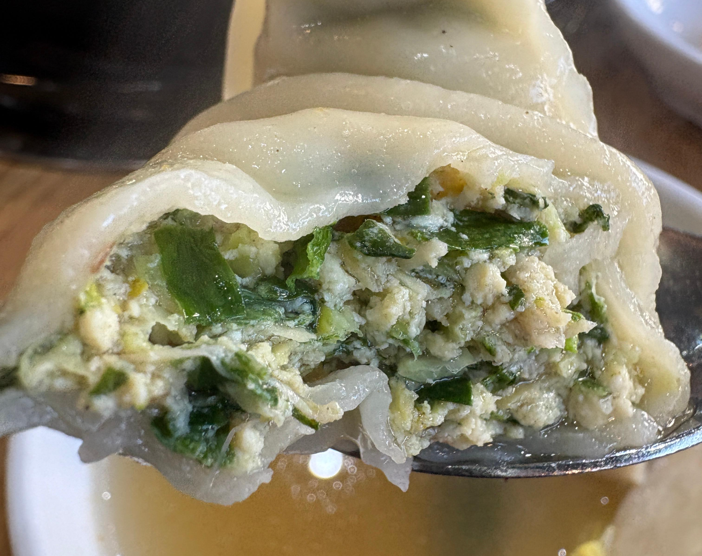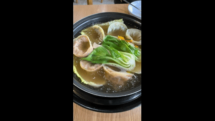 맑은 국물에 보글보글 끓는 동안 찐만두 한 개 시식!
