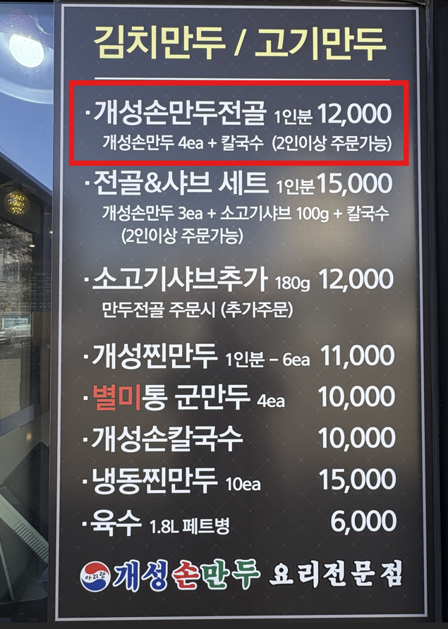 개성손만두전골 ₩12,000/인 x 2인 주문했습니다. 나름 착한 가격이네요.