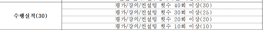 공고문의 서류 평가 방법을 살펴보면 수행실적으로 30점이 배정되어 있습니다. 저는 프로젝트 방식을 선호하고 주로하기 때문에 '건수(횟수)'로 보자면 30점이 어려울 수도 있습니다.(사실 40건의 증빙자료 제출이 귀찮음...) 그래서 2025년에 문의한 것은 맨데이 M/D로 제출한 것도 인정해 주는가 였습니다. 컨설팅은 1회이지만 28일간을 방문한 것이 몇 건 있기때문이였습니다. 전화가 와서 통화했던 기억이 있습니다.