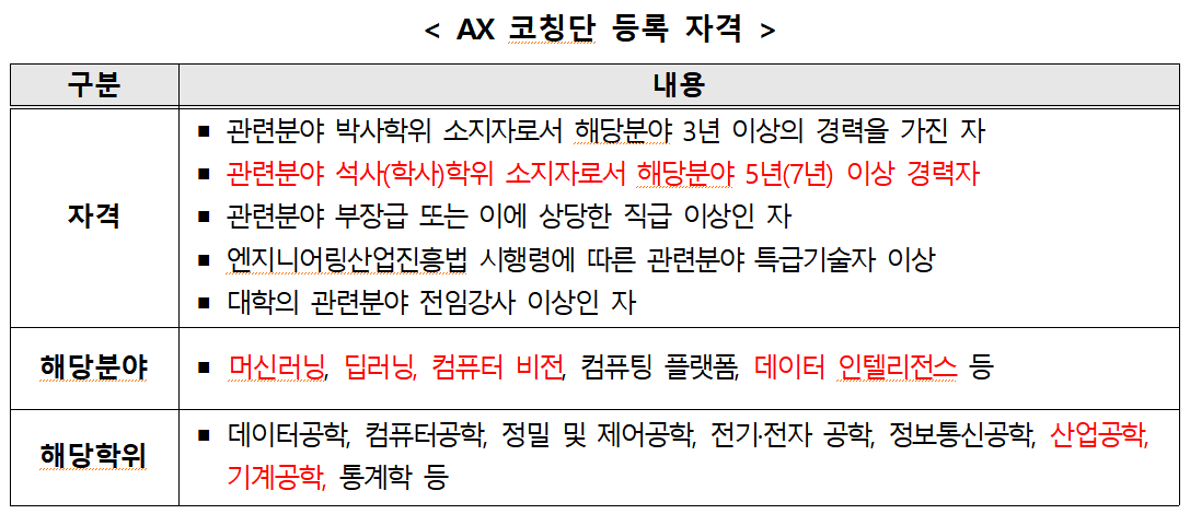 | 사업명 | 2026년 ‘AX 코칭단’전문가 POOL 모집 공고 |