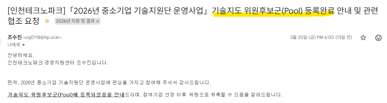| 1 | 인천테크노파크 | 중소기업 기술지도 전문가 | 위촉 |